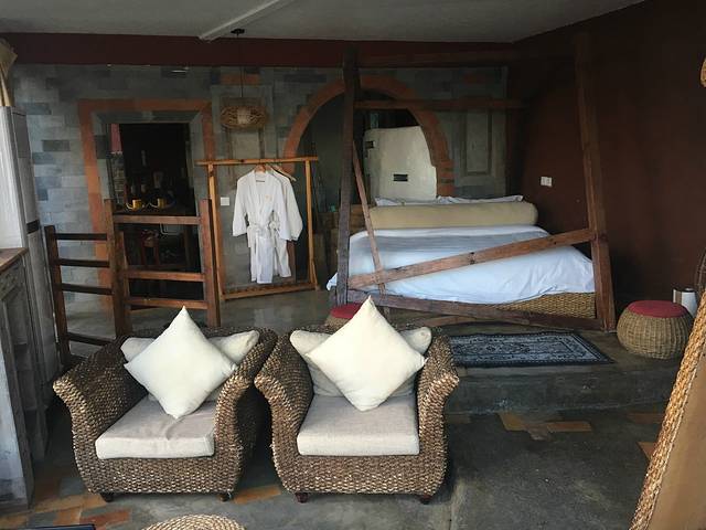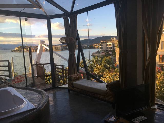 吃完饭,开车去双廊,由于修路,汽车只能开到外面,要进入双廊镇上还有一段距离,于是便做了旅游观光车,把我们拉到码头。(一个人10块钱)。到达目的地,便开始找海景房,想住可以接触到海的房子,那种就要1,2千才能搞定,就比如网上很火的:海地生活,杨丽萍艺术酒店,等等。在一番周折中,终于找到了一家价格能接受,装修很不错的房间。这家酒店的装修我很喜欢,每间房子的装修风格都不一样,酒店名字叫:大理双廊海云台酒店。每间房的命名是,第六感,宽容,毕加索,西西里,爱情海,高迪,第六感,等等。我住的那间房就叫海云台。很适合来洱海边度假的情侣来住。晚上我们吃了比较著名的当地菜-吉祥红。他们的菜都会有水果,什么苹果黄焖鸡,柠檬酸辣鱼,木瓜,等等。吃到了当地的海菜(有名的水性杨花)。