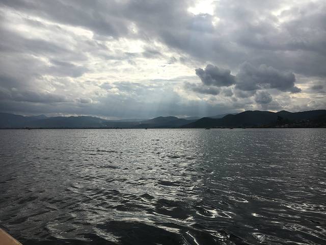 在美团搜索好吃的银梭鱼庄,一路导航,鱼庄就在去双廊的路上,把车停到鱼庄的门口,看到对面洱海的景色,已经忘记了疲劳和饿意,拿起相机,我们就开始了各种拍照。