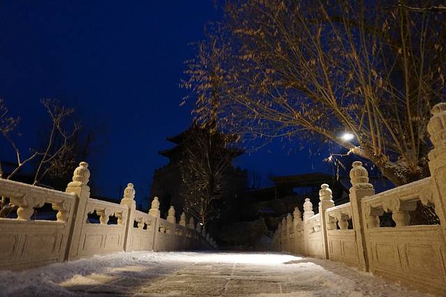 不到清晨5点我就开始在床上辗转反侧,作为组织者事情太多压得我睡不踏实。。。新酒店有些刺鼻的气味,感觉到有些头疼难忍,拉开窗帘竟意外的发现,外面在飘着大雪,顿时困意全无穿上了衣服带着相机就出了酒店。