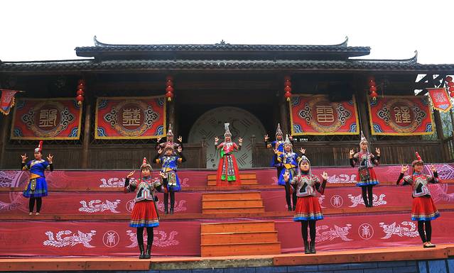 这儿是婚嫁表演的主舞台,在活动开始前,会由扮演新娘和伴娘的畲族姑娘们进行舞蹈表演。