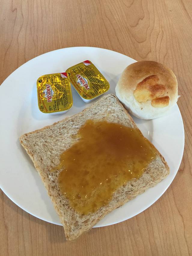 酒店的自助早餐,还是我喜欢的面包果酱,外加一杯咖啡!