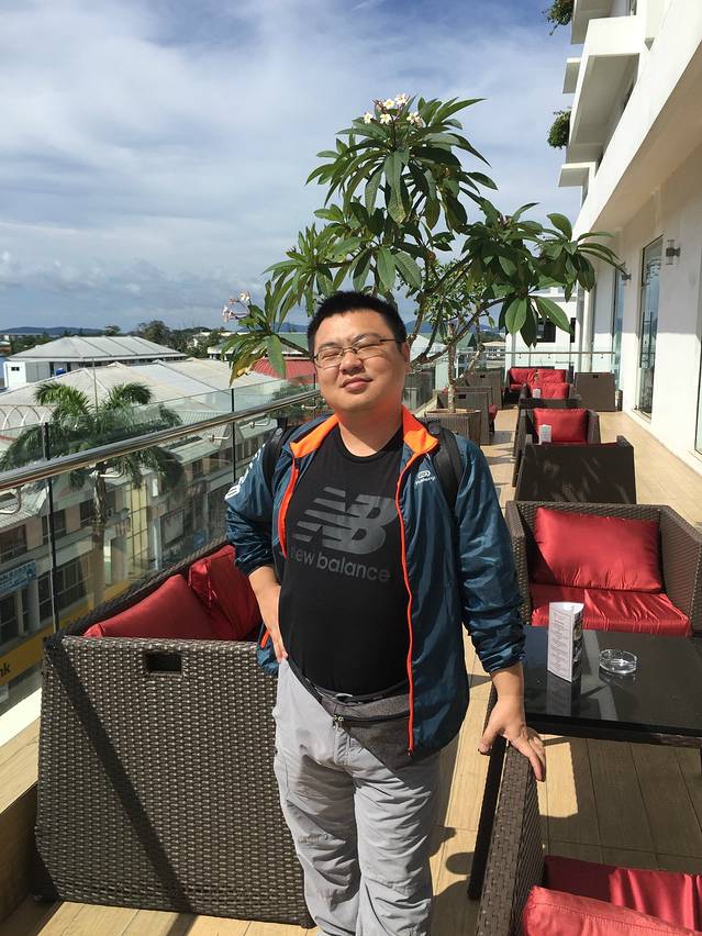 临行前在酒店的阳台来个照片吧,虽然很晒,但是心情还是很美的,看老公那得意的表情!