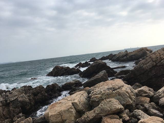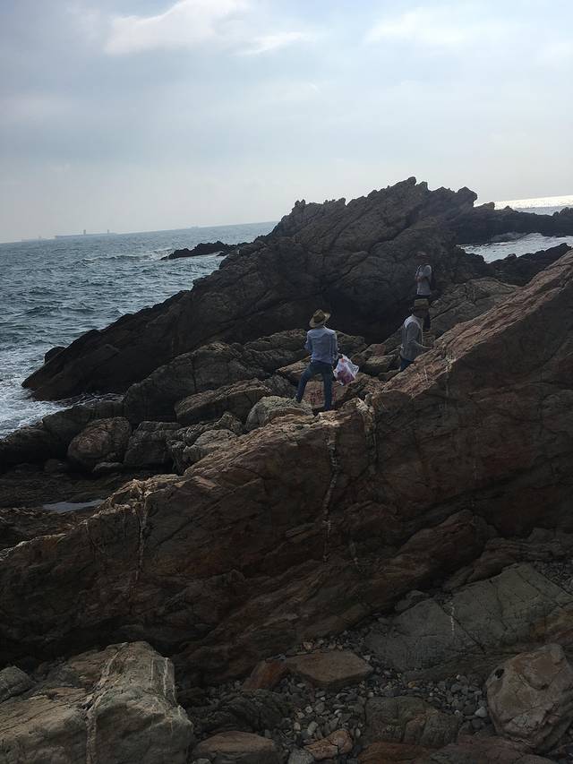 沿着海岸线走,一路都是这样的岩石,爬上爬下