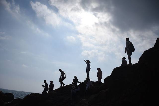 攀上的那一刻心情无比愉悦,看看大海,看看那些努力攀爬的游客
