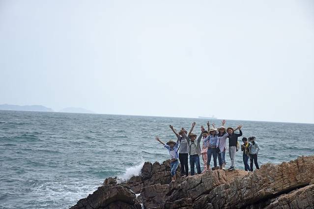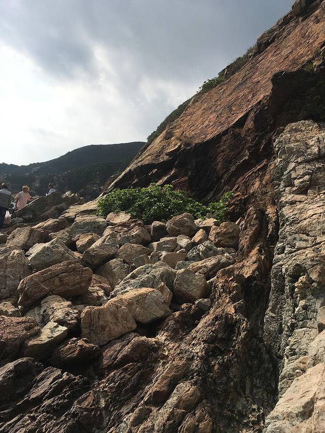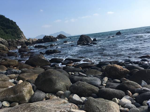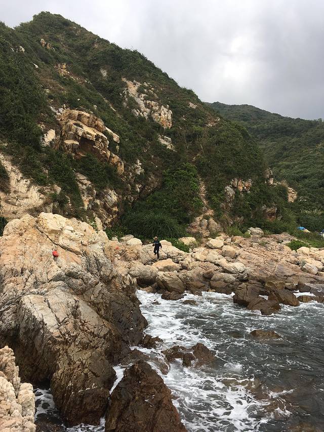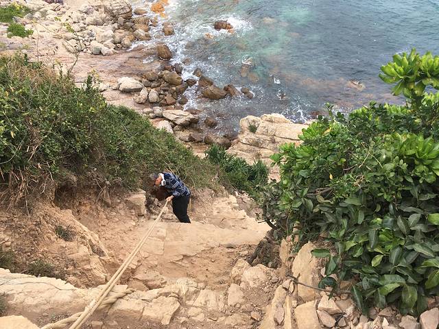 一路都是岩石,有俯卧的,有矗立的,还有半蹲的。有时你得跳上去,有时你得爬上去,有时你得绕过去。就像所有的小说有高潮有低潮一样,我们也迎来了低潮。终于看到了海滩,终于不用像猴子一样跳来跳去。海好像也懂人的心思一样,手工了一张超大椅,躺下三人没问题。不如来个贵妃躺吧!休整好,继续出发。只有上山路可通,因为海他暂拒我们。上山必须要借助绳子,然而我们是兴奋的,体验了攀岩的惊喜。也约定好了这里是我们的终点,上了这个山我们就得沿路返回,天色不早。返回的路上,在山上绕了好几圈才找到正路。也不知是来时已经锻炼了,还是返程要简单,总之同样的路觉得返程好简单,没有来时的那种惊险。一天的朝圣之旅结束了,意犹未尽。