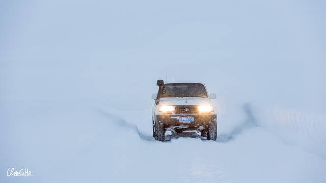 在这里有一群白精灵,他们蹦跳着舞蹈和欢笑,时而在雪原里飘飘荡荡,时而越上我们的车窗,他们是那么热情,想邀请我们一起探戈,而我们能够响应他们的是一直摇动挡风玻璃上的裙摆,一曲终了,我们终究抵不过他们的热诚。