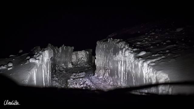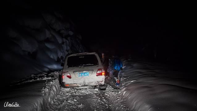 原计划晚饭后返回的我们开车开到刚出村子的地方,遇到刚刚坍塌的雪崩,大概长20米,高3米左右,我们只能返回村子等,师傅说,如果有当地司机今晚出村或者进村,他们会人工挖出一条路,果不其然,凌晨十分,我们听到了村子里面的车声,知道路通了,抓紧出发,雪崩路段已被挖开。