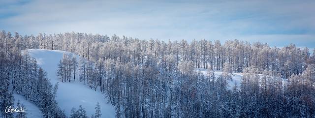 之前我从未如此近距离地融入一片冰雪世界,直到看到这里一望无际的白雪皑皑、与雪地相互映衬的挺拔高树,我真正被这片纯净的景象所震撼,似乎踩出的每一个脚印都是一种违和的冒犯。