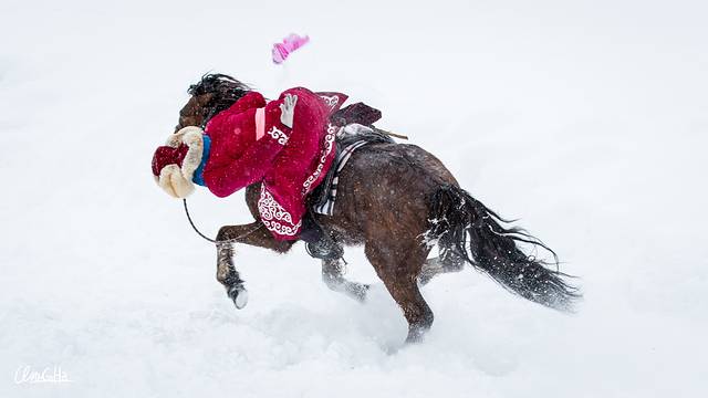 自从来到北疆这片土地,随时都被这里的自然伟力所震撼,我们惊叹于上天的杰作,又期待着下一场盛宴。在禾木村,我们就看到了这里的人们在雪地的狂欢,不同于东北的那种坚冰质感,这里的集体活动显得更加柔软、热闹、生动,人们的吆喝夹杂着马匹的嘶鸣,崔动起来的马儿带着人们在这里撒欢奔跑,停驻的它们又时不时打一个响鼻,响应着北疆村落独有的静谧。作为外人,我们就这样看着都感到欣喜,这里的元旦新年,白色为主,点缀着喜庆的红,别有一番滋味。