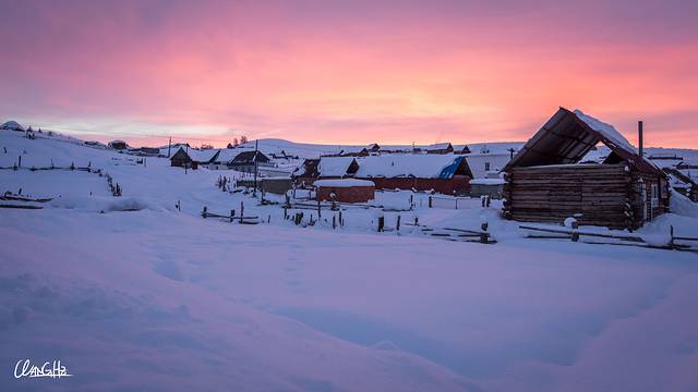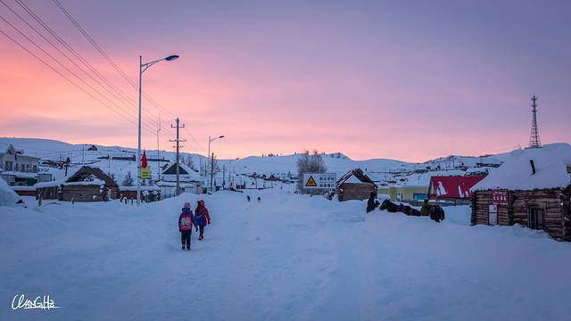 但今早马夫就过来敲门,告诉我们昨晚的大雪把路完全封住,连爬犁都没法过去,美丽峰是去不成了,但还是可以乘坐爬犁去看日出,这便是另一件在禾木必须要做的事情了。