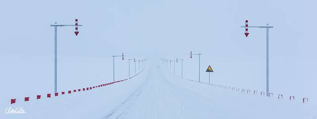 坐在车里,感觉是在穿越一条长长的时空隧道,四周只有被车灯照出的雪白,更加让我们感受到通向未来的神秘感,想把手伸出车窗去触摸这一道时空隧道的墙壁,感受它的魔幻,但是真的摸到了之后,却是充满了真实的喜悦,我们真的在穿梭时空,这不是做梦。
