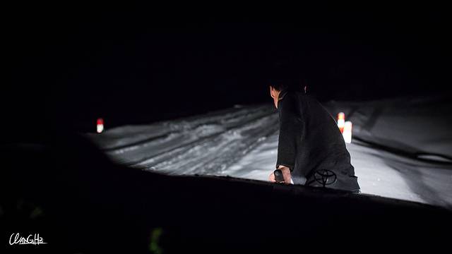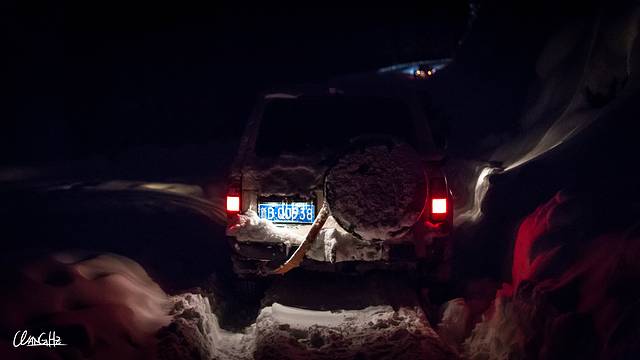 我们像是艘气垫船一样行驶在路上,赖在雪地又上像个没有玩够不愿回家的孩子,就那样搓着往前挪动,四周的一切都是黑的,我们可以看到前方的20米,这是视线延伸的极限,汽车轿厢是我们唯一的安全感来源,奇妙的是我们谁度没觉得危险,这就像一次长辈把冰凉的手伸进被窝叫你起床的恶作剧,冰凉而又温暖。