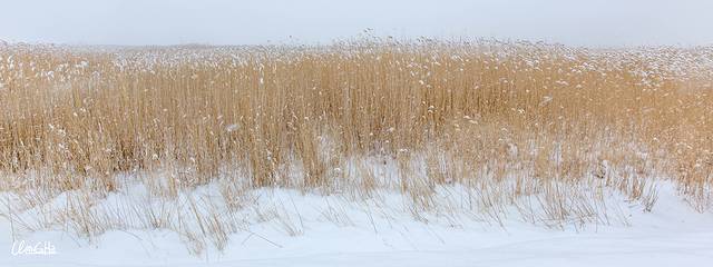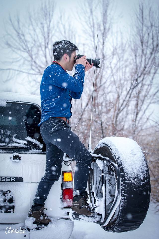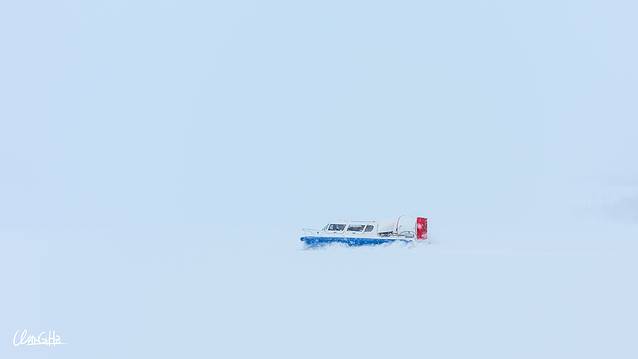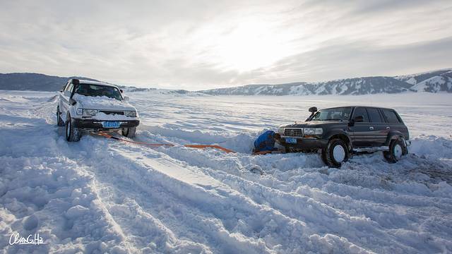 路过一片芦苇荡,与其它季节不同的是,此刻的芦苇在冰河之中翩翩起舞,又像是在抗拒风霜而频频抬头却不断被压下,为了找到一个高点拍摄,我们把越野车当成了拍摄工具。