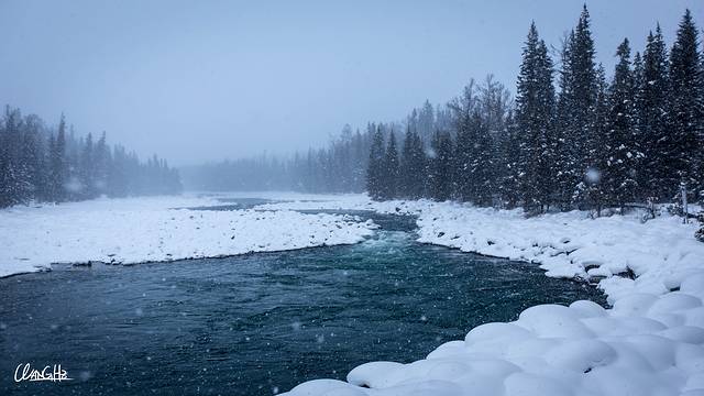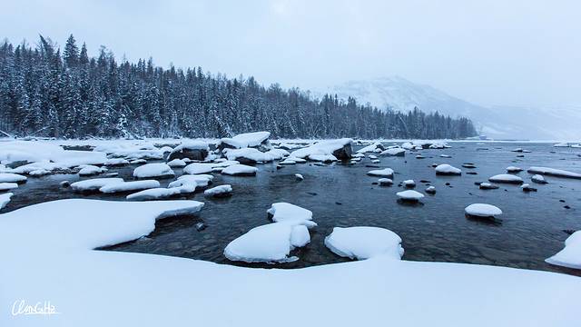 为了追上前几日耽误的时间,我们一行人决定下午就前往禾木,上午时间就去喀纳斯湖和喀纳斯三湾,但早晨又得到消息,出喀纳斯的路雪崩了,第二天才可以出去。不过这样也好,可以有一整天的时间待在景区,无奈的是,喀纳斯最著名的三湾——卧龙湾、月亮湾、神仙湾,都因大雪天能见度低无法看到。