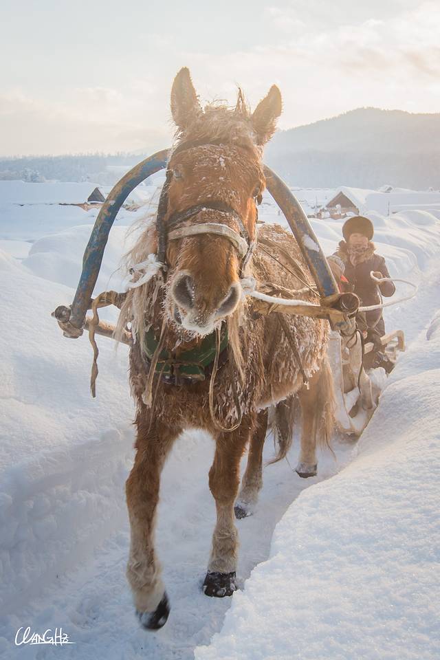 在禾木,有两件事情必须要做,一件就是一定乘坐一次马拉雪橇了,马拉雪橇又称爬犁,它是过去人们主要的交通工具,坐着它穿梭山林古道之间,就像在旧时光一般。昨日与马夫约好坐马拉雪橇去美丽峰,这是一座几乎与世隔绝只有8户人家的小村庄,群山环抱,冬季更是人迹罕至,更重要的是2个小时的爬犁,路上要还要走过无数的上下坡,惊险刺激,可以让你一次坐个够。寒风在耳边呼啸而过,景色在眼前疯狂的倒带,我的心在雀跃,连带着耳鸣嗡嗡的声音,我终于知道自己应该做点什么,我畅快的叫嚷着,也许还带着哭泣的嚎啕。