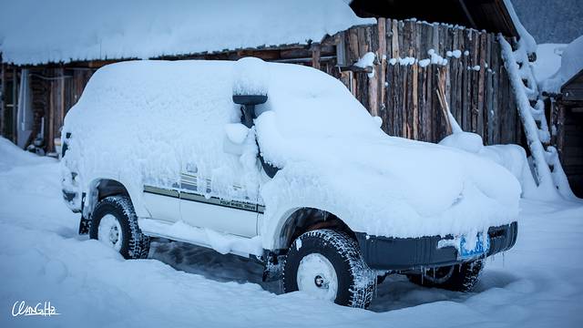第二天,正式开始喀纳斯之旅,我们的第一站便是有“西北第一哨”之称的白哈巴村,但此时我们还不知道,等待我们的却是十几年一遇的大雪。一大早我们就得到了消息说昨晚的大雪把路埋住了,可能去白哈巴的路程会非常难走,我们马上出发,怀揣着对美景的激情和期待,还有一点不信邪的赌气。