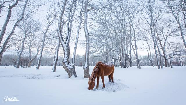 到达阿勒泰后,马上出发去布尔津,"阿勒泰 - 布尔津"这一段路况比较好,但也就是相对而言,少量积雪,车程1小时,道路两旁都是雪原,偶尔会经过一些小村庄,当地村民都是骑着马在路边,一片雪白的世界,其中的零星点缀更像是画中的写意诗。我们就这样尽量安静地开车,我突然有一些羞愧,羞愧于引擎的轰鸣惊扰了这里的平静,我们就这样闯入,这一刻我自然而然的,变得有一些虔诚,至于对谁虔诚,我暂时没有想到。
