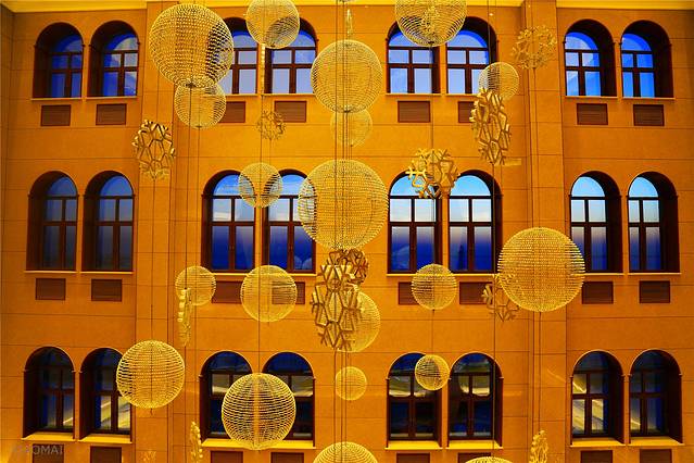 透过一扇扇圆顶窗看夕阳的余辉美仑美奂。