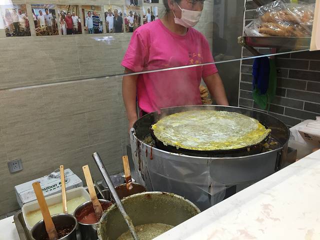 绿豆的成分多,看饼皮颜色就能看出来。但不是脆的口感,整体偏软一些,一层酱料一层腐乳,口感真的是神奇哈哈哈哈,我真的有点吃不惯腐乳耶,相比之下还是觉得路边那种煎饼果子更实惠好吃!
