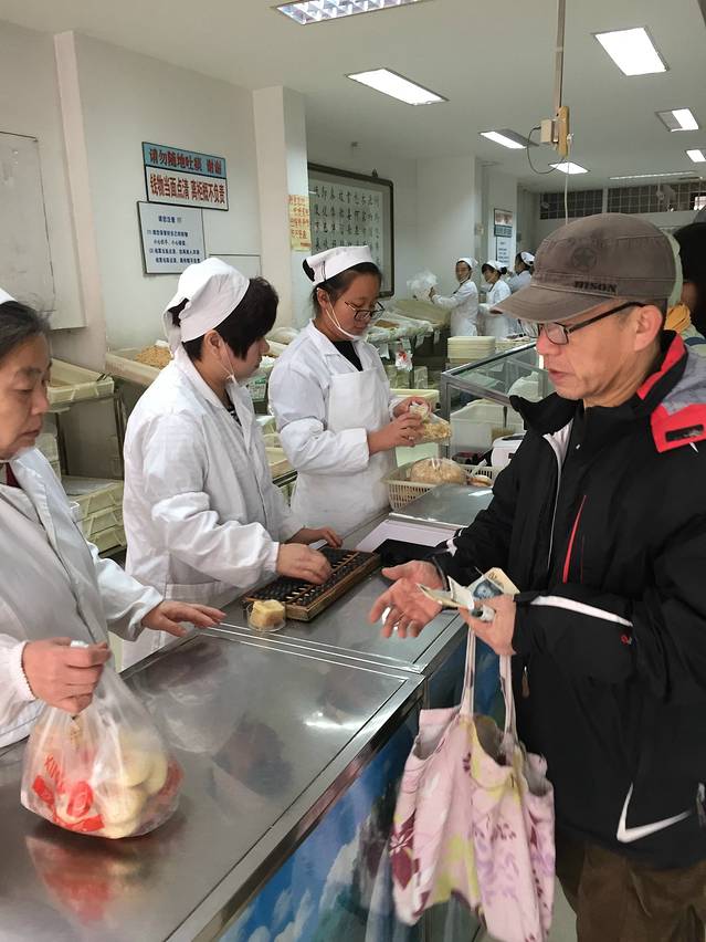 路过一家老式糕点店!好多老年人排队买~就在南市食品街旁边~这种估计是老字号啦,还是算盘算账呢!