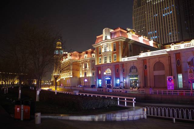 到酒店放了行李再乘地铁到五大道小白楼天已经快黑了。这时候才真切感受到这座城市,建筑都非常欧式,我觉得不只是在景点,各个地方的建筑都很有意思,特别是那种拐角处的楼房。觉得欧巴的这张照片很有意境,而且可以假装在欧洲耶23333
