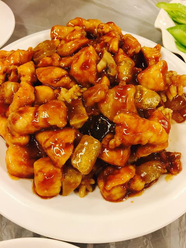 这道叫黑蒜粒牛肉,好像是60块吧,牛肉粒好多!!我很喜欢这道菜,偏甜,跟无锡菜口味挺像的,但大蒜不是红烧黄鳝里面那种软糯的,是硬的质地,裹上黑胡椒味的汤汁之后很香。