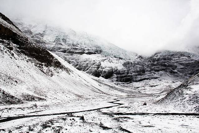 云已经压过了卓木拉日雪山。当想念西藏成为一种习惯,闭上眼睛,西藏的云便出现在脑海,他们悬在那里,静静地,沉默不语,像千年以前就停在这里。这些天地相连的云朵,他们有一种让人安静的力量,足可以让人想到“行到水穷处,坐看云起时”的淡泊闲适,没有尘世的喧嚣,没有时间的流动,天地悠悠,仿佛唯我一人。