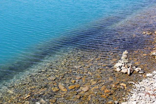 凝视眼前这一片清澈,不愿离去。走到湖边摞一块石子,积一份功德🙏