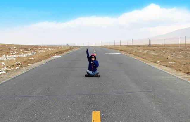 回程路上,坐在公路中间的心愿总算得以完成,下一次我要躺在阿里的大道上