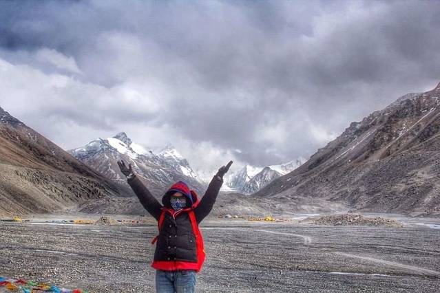 这里是今天一路海拔的最高地——那根拉。我让司机师傅帮我拍几张狂奔的照片,周围人傻眼了😉奔了几圈回来也没啥反应,师傅说这里跟珠峰大本营只相差10米,吼吼,看来后半辈子可以挑战