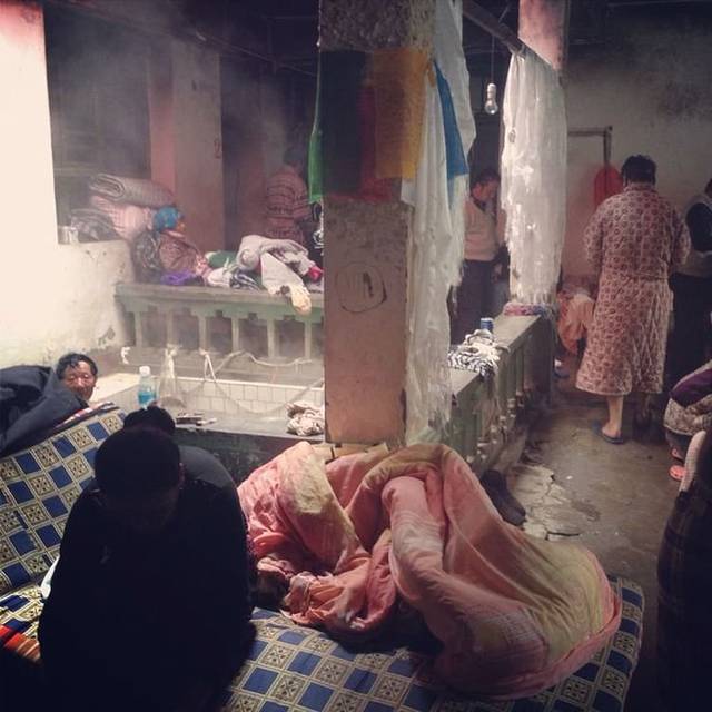 沿屋四周榻上睡满了藏族朋友,他们铺上自带的海绵垫子,下池泡个十来分钟,再裹衣起浴,躺在自己的铺上休息。