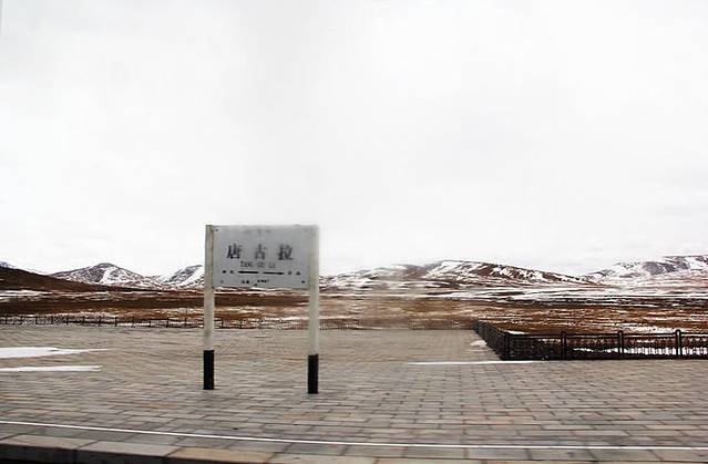 海拔5068.63米的唐古拉站,是青藏铁路海拔最高的车站。在距离唐古拉站1千米处,是青藏铁路也是世界上铁路的海拔最高点。列车飞快驶过,没做任何停留~