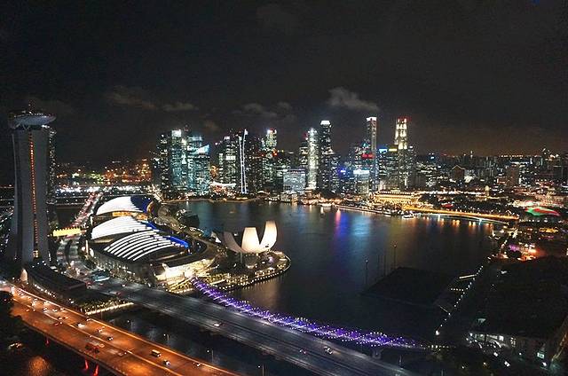 摩天轮和鱼尾狮分别在金沙酒店的两边,去完鱼尾狮走去摩天轮刚好就天黑了,上到摩天轮(门票160RMB)后你会看到那景色,美呆鸟~