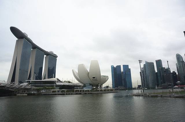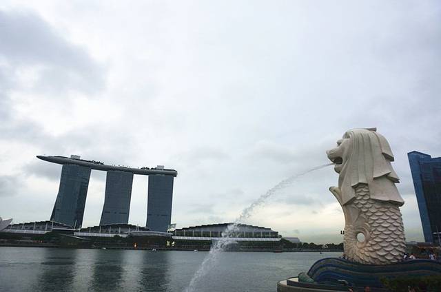 买买买后从金沙购物中心有一条天桥出来前往鱼尾狮,其实那天一直下着小雨,但沿路走的每个地方都有挡雨的棚或建筑,再一次强调新加坡人的贴心!天桥一路上可以拍到滨海艺术中心(类似被撕开柚子的一个建筑),远处可看得到传说中的鱼尾狮,真是小的可怜!一路上可以拍到金沙酒店、摩天轮、鱼尾狮和各种大楼。