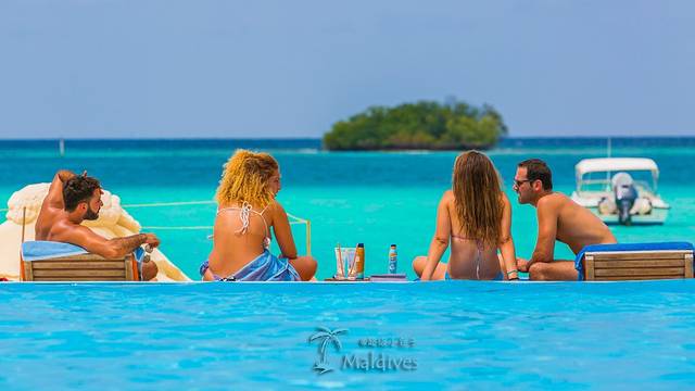 下午坐船去附近的Finolhu岛,原来CLUB MED在这一带共买了两座岛。卡尼岛只是相对流行的一座,适合各种人群,全家出游也可以,而Finolhu岛更适合情侣——小孩子都不让上岛。