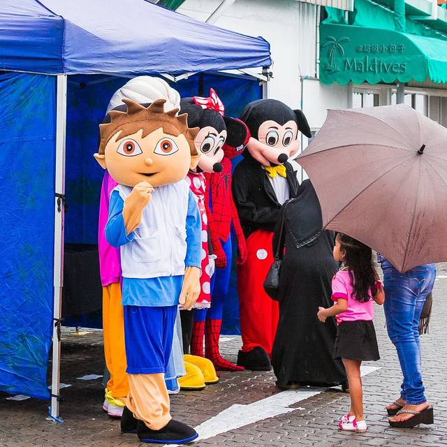 码头的入口处有气球拱门,里面远远可见各种真人版的卡通人物走来走去,估计是个儿童活动嘉年华之类。