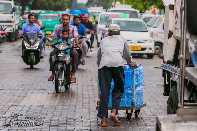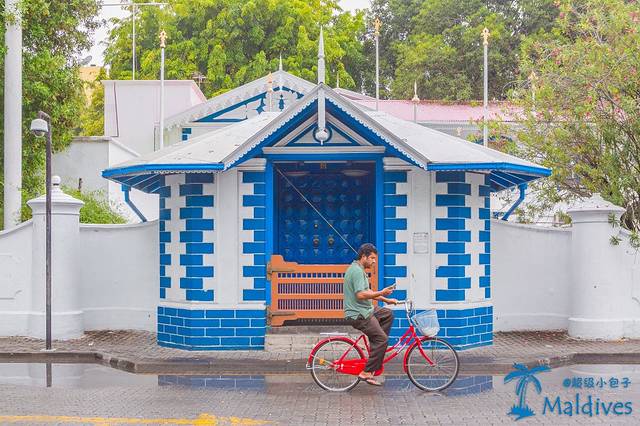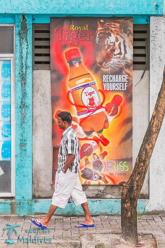 不到一根烟的工夫,船就到了首都马累,它坐落在机场附近一个椭圆形的小岛上。大概因为首都太繁华,建筑物太多,所以这里的马路都巨窄无比,大还好,起码有人行道。小巷子就完全只能过一个车的宽度,有摩托车或者行人的时候汽车只能在后面慢慢排着,再找个家门框深点的地方超过去。就这么窄。