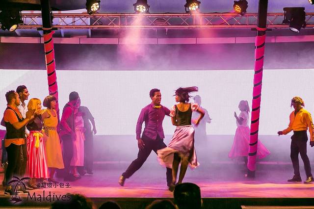 晚饭过后,在白天那个小舞台开始热闹起来,大喇叭动次大次地放着各种现场嗨曲,白天那些多才多艺的GO们现在又换上了各种主题表演的装扮。不论是唱歌还是跳舞,都有模有样的,颇有几分专业演员的架势,让我不禁怀疑,也许这里的GO本来专业都是学艺术的,做服务生才是他们的兼职。