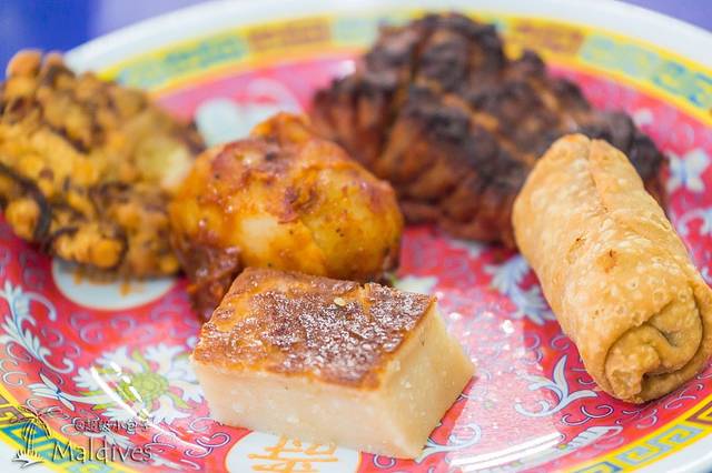 这些食物有的长得像炸团子,有的像炸春卷还有的像没炸好的团子和没炸好的春卷。总之我是看本地人都来这里吃饭凭着一个吃货的本能闯进来的,但看着这卖相实在是不敢恭维。总之钱也花了,干脆先拿起那个团子一口咬下去,没想到一咬之下,竟然很好吃。马上惊喜地把其它几种都试了个遍,都非常好吃!哈哈,看来真的来对了。
