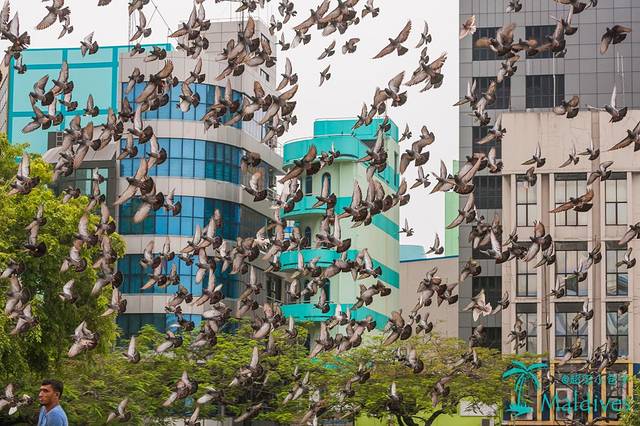 清真寺外面不远是独立广场,这大概是马累最宽敞的地方了。广场上的主角却不是熙熙攘攘的游人,而是这一大群鸽子,看来这些小家伙俨然已经把自己当成了这里的东道主。
