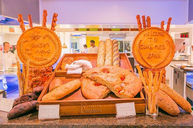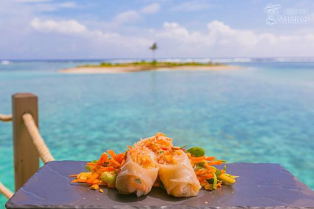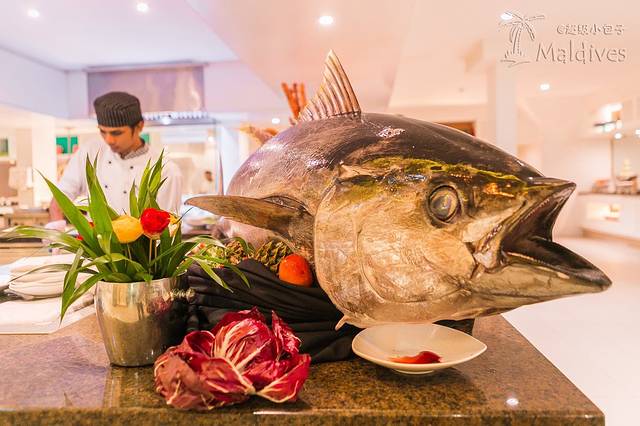 在我吃饭的时候,又有几个伙计纷纷坐到旁边来跟我聊天,他们英文都不是很好,有一个英语说得最好的,能说整句了都,我就跟他聊得最多。这些人都是从孟加拉国来的,但他们做的都是地道的马尔代夫食物。合着我们在岛上吃的还是酒店专门聘请大厨来做的国际口味。