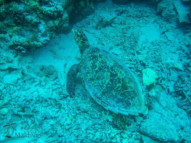 这次成功拍到了魔鬼鱼,当然离得最近拍得最清楚的还要属这大海龟,当时水深差不多在6、7米吧,一口气下到这么深还要努力给它拍照我也是蛮拼的~ 也就这海龟一动不动的能让我拍这么清楚,看它这么慵懒休闲的状态,这位仁兄八成就是住这儿的。