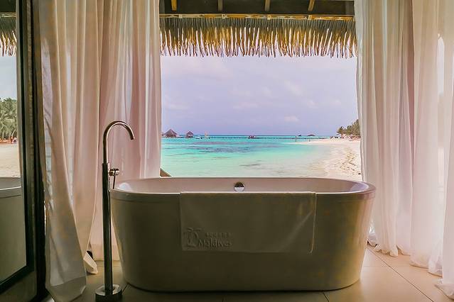 马尔代夫和其他地方不太一样的是,它全部都是岛屿组成,所以每个酒店就干脆买下一整个小岛,这样虽然交通方面会有些不便利的因素,但也有着天然独立的优势,为前来度假的客人提供了足够的私密性。
