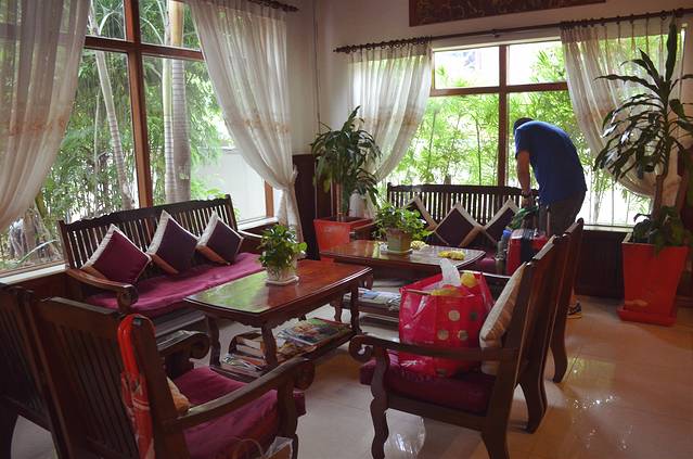 评价:出发前看网上的游记攻略,对妈妈家的入住点评简直是汹涌澎湃,好评如潮,一边倒的好评让我不免有些半信半疑,亲身入住之后才发现英雄所见略同,广大驴友的眼睛果然是雪亮的!妈妈家的服务堪称好到爆棚,一进酒店服务员就热情送上冰饮和冰毛巾,如果去吴哥窟看日出酒店会在早上5点给客人准备三明治、面包、香蕉打包作早餐,酒店签约的突突车包车价格合理,马杀鸡服务7美金一小时,手法精湛,饭菜好吃又便宜,同时,酒店还可以代寄明信片,可以买邮票,1美金1张(和邮局卖的价格一样),后来又在酒店预定订了去西哈努克的夜巴士,妈妈家的服务没有做不到,只有你想不到,强烈吐血推荐。