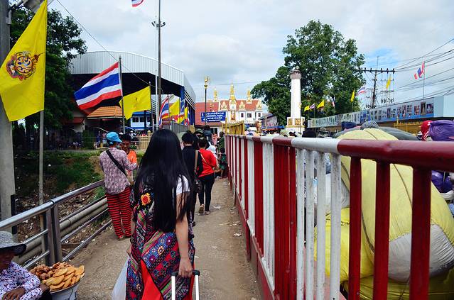 跟着人流进入泰国的边境口岸亚兰,填好入境单后,交海关,顺利进入泰国,出关后很多人会来推销坐突突或汽车,不用理,凭吊牌找到泰国那边的换乘大巴。