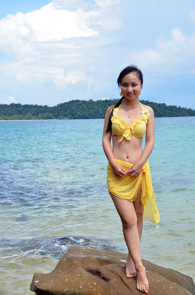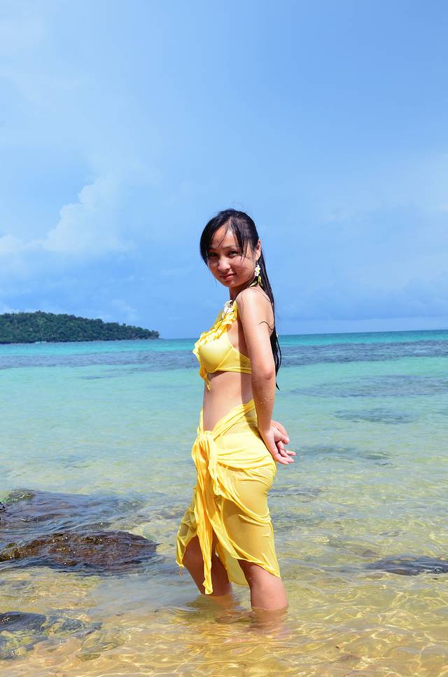两年前在长滩岛,曾拍过蓝色和粉红色的比基尼,当时就豪迈的想,赤橙红绿青蓝紫,总有一天,我要在世界的各个海岛拍齐七色,来召唤彩虹,高龙岛,选的是黄色。
