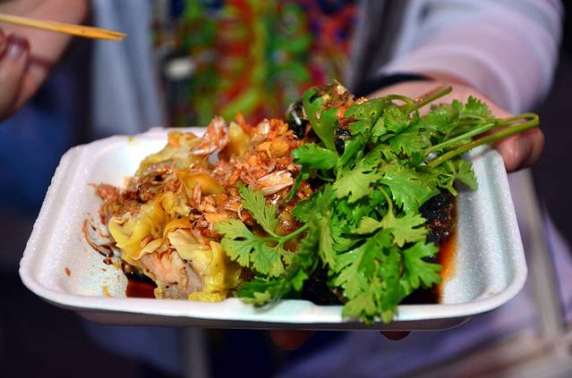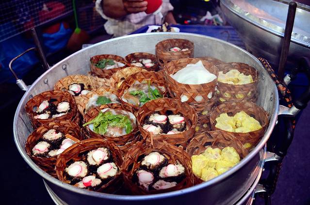 随随便便点的竹笼烧麦,浇上酱汁,洒上几片香菜,好吃的让人矛盾,想再来一笼吧,又放不下旁边的小吃摊,一路吃过去,是我们在曼谷的终极目标。
