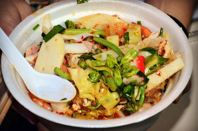 80泰铢的米线,加了海鲜,蔬菜和肉肠,老婆婆的巧手一拌,尝一口,和陶差一点““执手相看泪眼,竟无语凝噎”,立马懊悔怎么只给曼谷留了两天,若不是假期有限,上班无奈,真恨不得立即去改签机票,留在曼谷顿顿胡吃海塞。