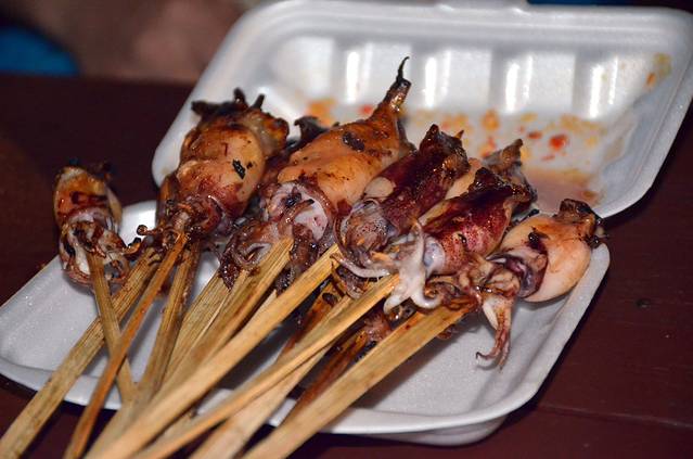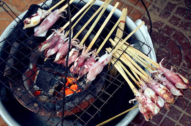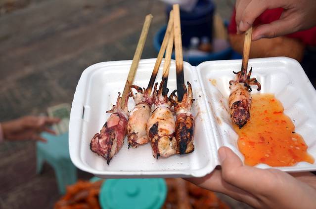 街头的小吃很是便宜,一大串烤鱿鱼也不过是45泰铢,合人民币8块多