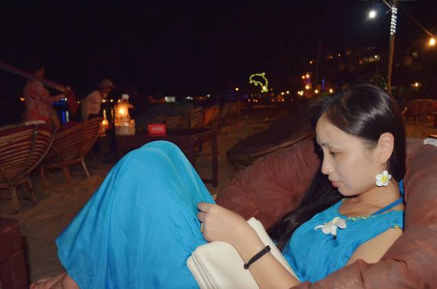 夜晚,也没有了白天的炎热,坐在海滩的躺椅上,海风阵阵,海浪声声
